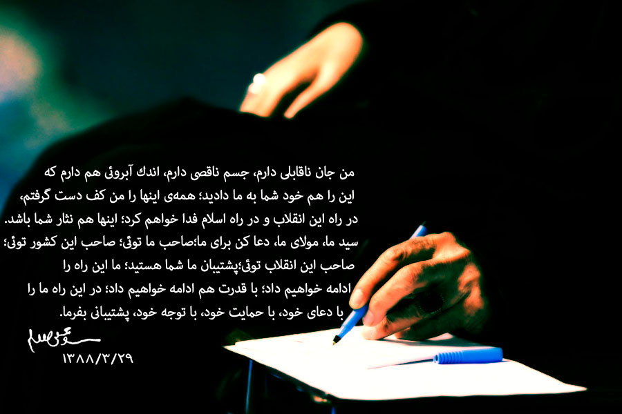 دشمنانمان بدانند اگر از سرهایمان کوه بسازندهرگز فرزندانمان در کتاب تاریخ نخواهند خواندکه خامنه ای تنها ماند...